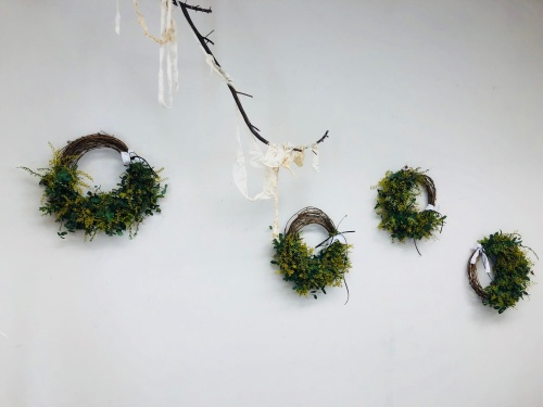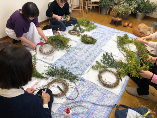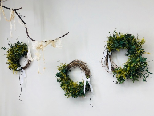 フレッシュミモザなので今年はワイヤーで巻き巻きしながら作ります。