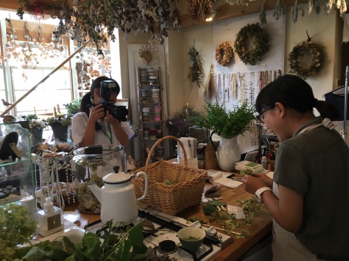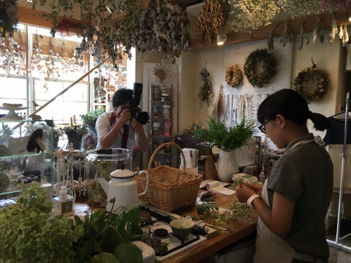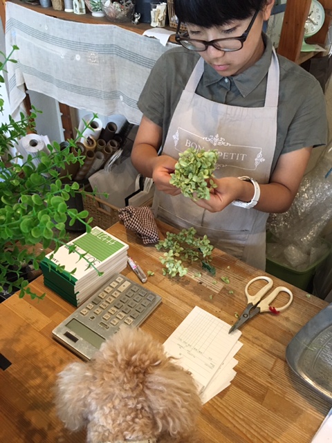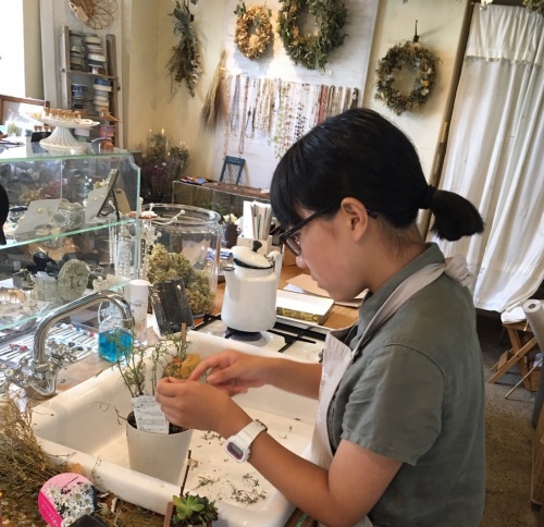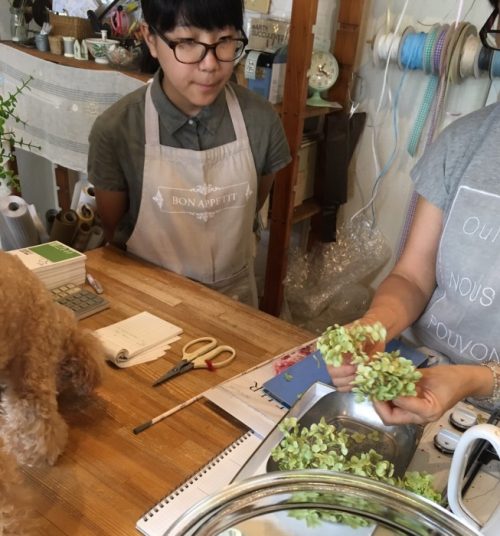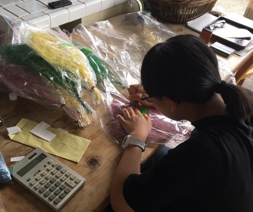 アジサイのワイヤリングの説明をしっかり聞いております。
