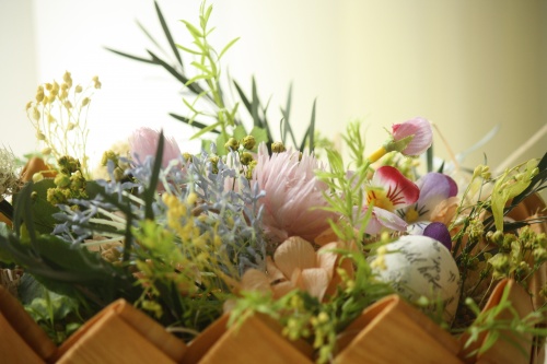 花材は、プリザーブド、ドライ、アーティシャルと三種を使用しました。