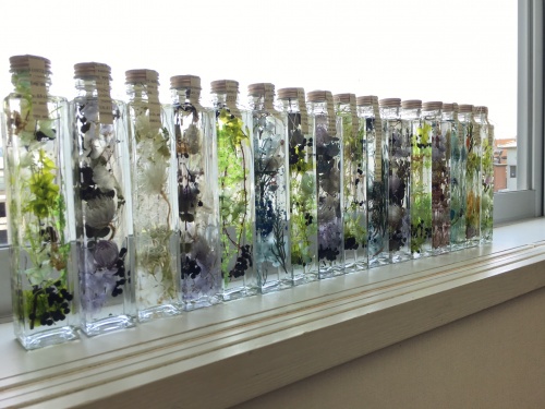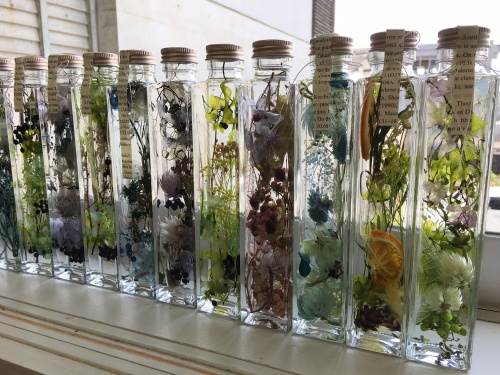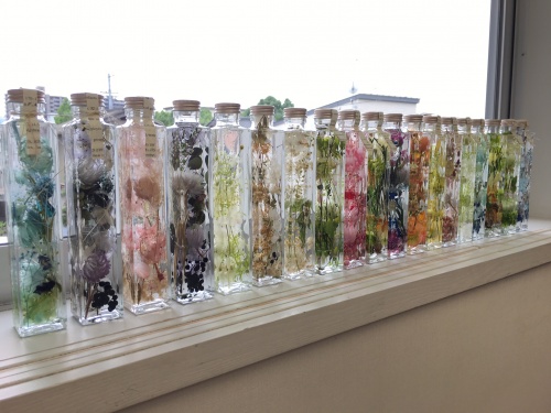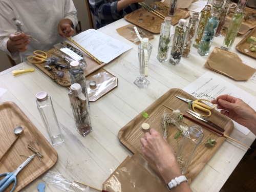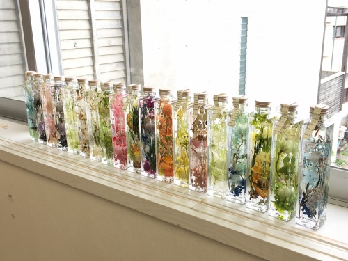 今月のレッスンのハーバリウム、みんなの本数を合わせると何本になるんだろ〜