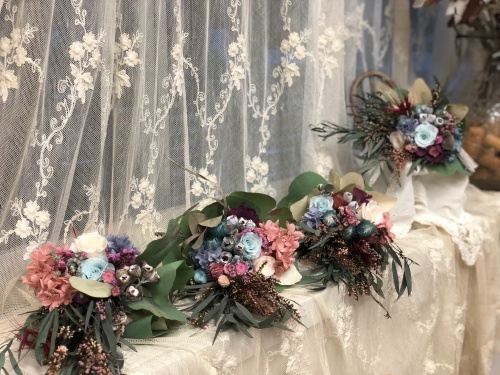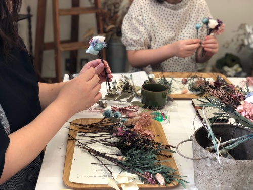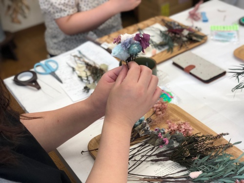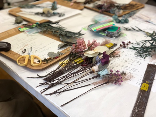 ブーケレッスンの横で、リボンリース製作を頑張る人が、、、
