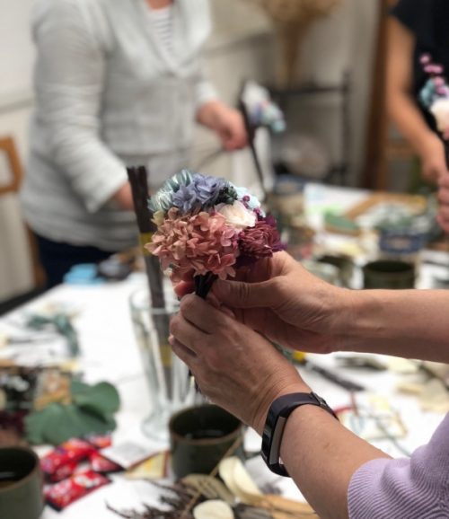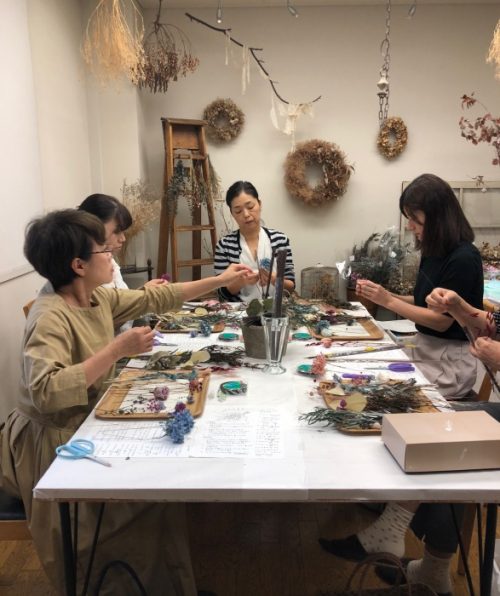 あまり見本にとらわれず、それそれの手元にある花材を生かすことを考えてほしいです。