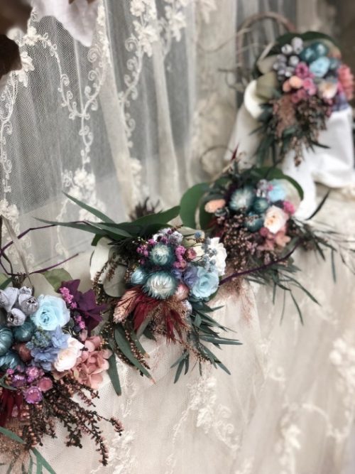 同じ色の花材で作っているのに、隣同士の花のもっていきかたで 全くちがうブーケが出来てしまうからオモロイです。