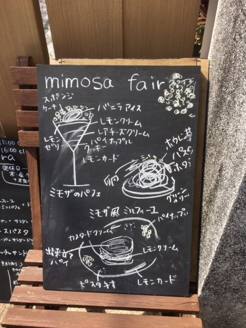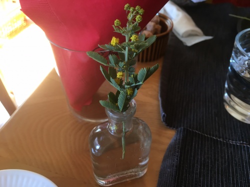 お店で販売していた「ミモザ」がご縁で ミモザフェアをやっているという「クッチーナ サクラ」というお店にスタッフでランチを食べに行くことにしました。( ´ ▽ ` )ノ❤