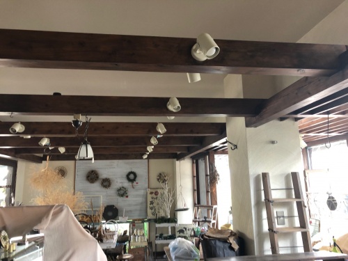 天井の梁は、まるで古民家の廃材を使ったかのような仕上がり