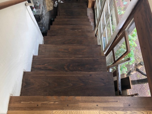 通常ならオイルステインを使用するともっと安上がりだと思いますが、なにせ液状、、、下向き作業には向いていても上向きの作業には不向き。