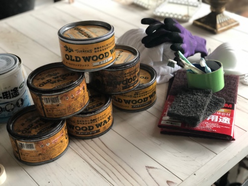 何度も何度も買い足し、買い足し、白いオイルはアンティークテーブルに入れ込みましたーー