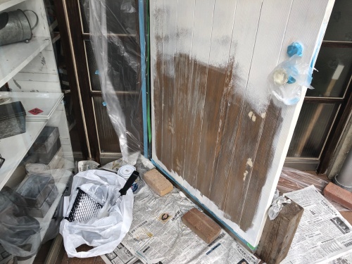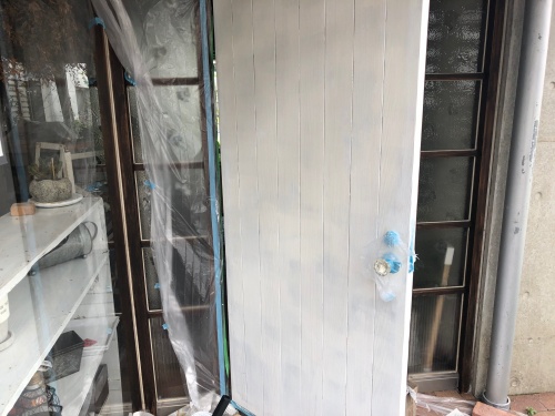 この日は、ドア二枚 予定以上の進み具合に大満足、大工の娘やき!(ペンキとは違うよーな気もするけどねー)