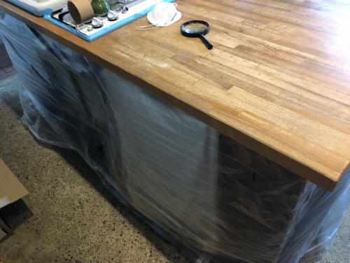さて、カウンターですが、レジで使用している部分の劣化はかなり酷い!木が痩せて凸凹になっているところがたくさんあります。