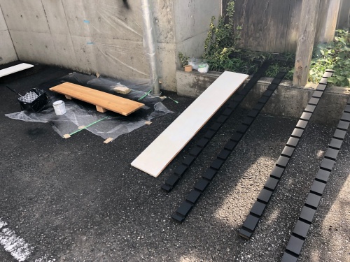 柱部分は、黒のツヤ無しスプレーで、、、、どの面もぬらないといけない、、、