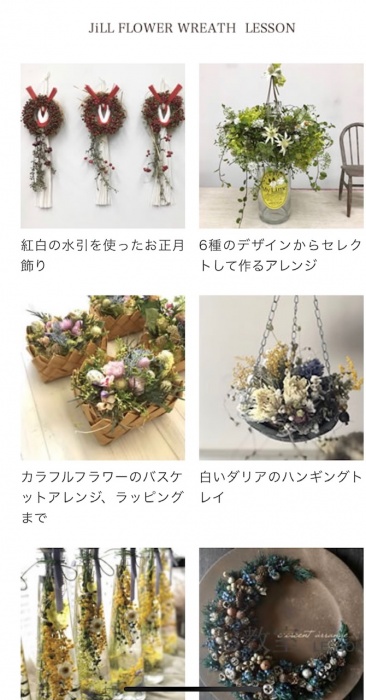 カテゴリーは、レッスン、ワークショップ、ショップ、ハンドメイド、プライベートに分かれています。