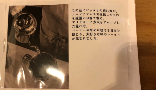 こだわりのコーヒーについては、私からではなく この冊子に載っていますので興味のある方はお店でご覧下さい。