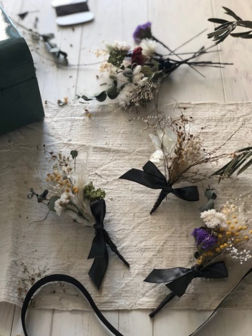 私がヘッド用に作ったものを、急遽ブートニアに変更。