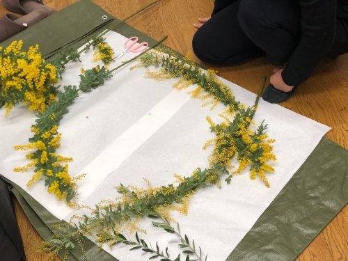いつものテーブルには、3名しか作れないのでーー、床で作る人もおります。