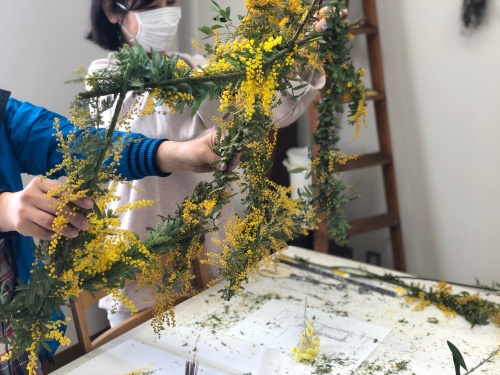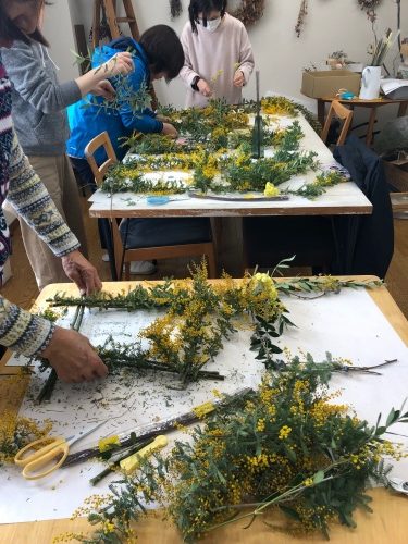 自然の枝ぶりを生かして作る、生かし方がいつになく大振りなのでーー、「このレッスン楽しいーー(๑°o°๑)」と言ってもらって 嬉しい😆あたし(笑)