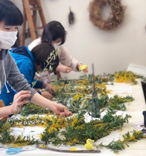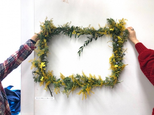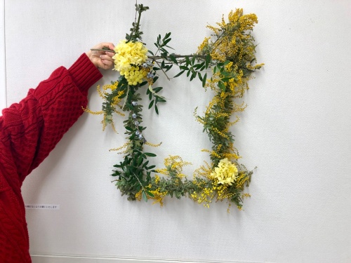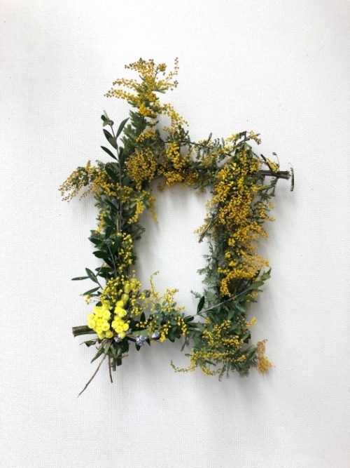 ミモザフレームのアレンジ、飾って初めてフィニッシュです。
