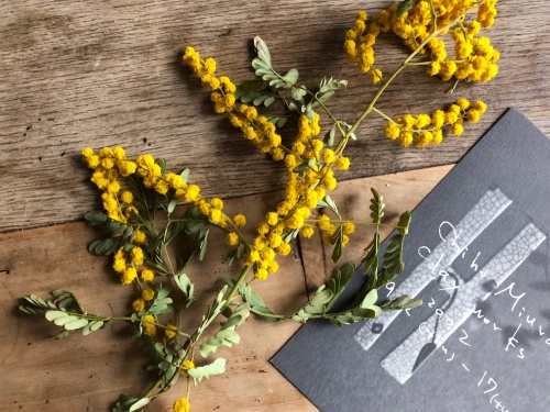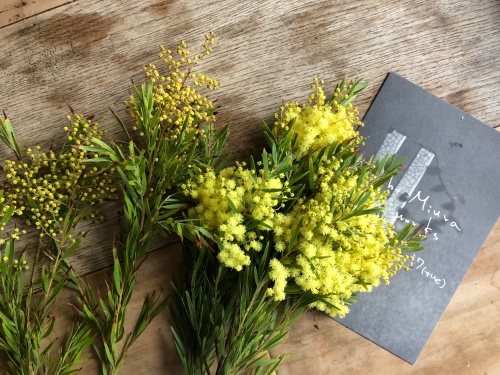 ポストカードを横に置いて、大きさがわかると思うけど、かなり小さいミモザちゃん。