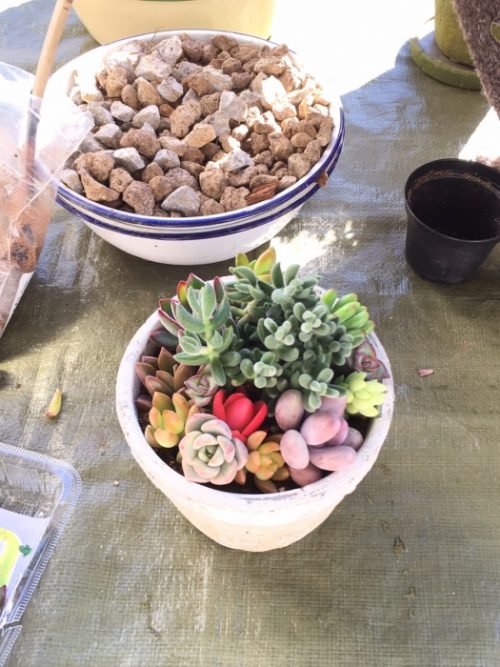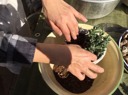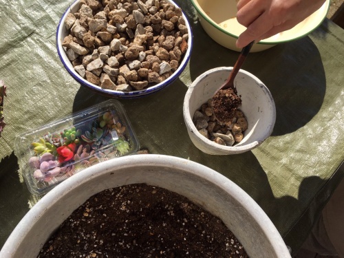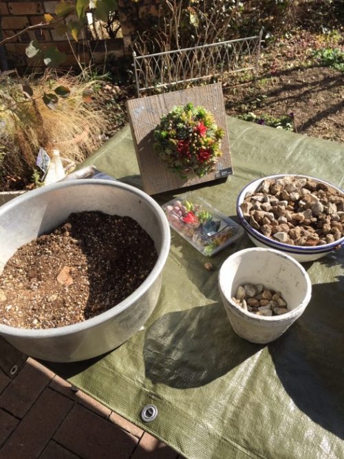 多肉が大好きなお母さんへのバースデープレゼントに、自分で寄せ植えです。