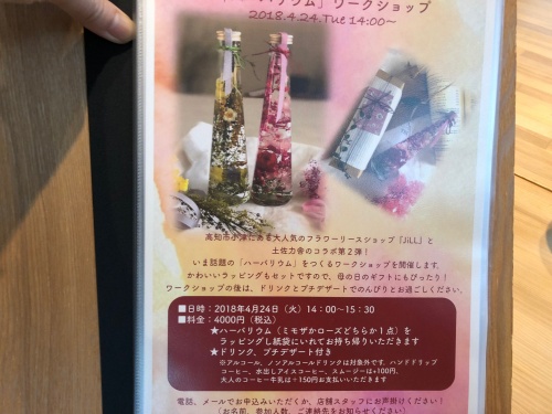 土佐力舎のメニュー表を開けるとワークショップのチラシが、、、