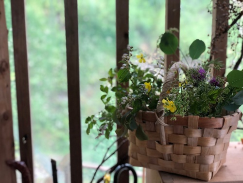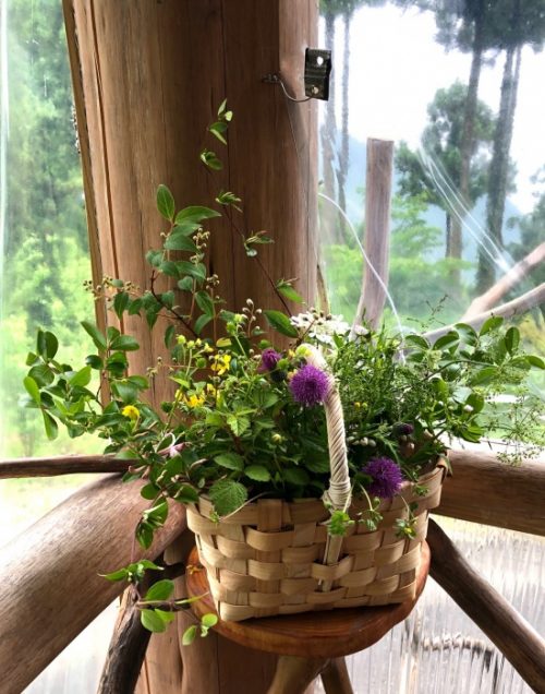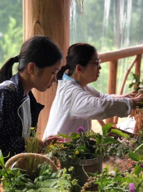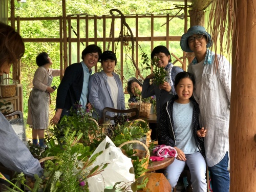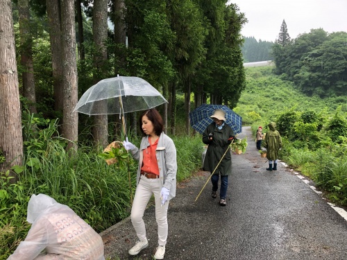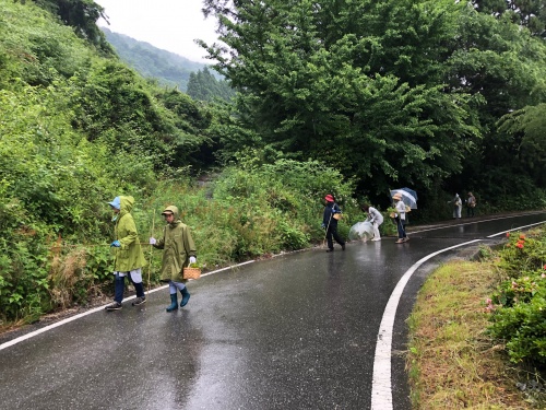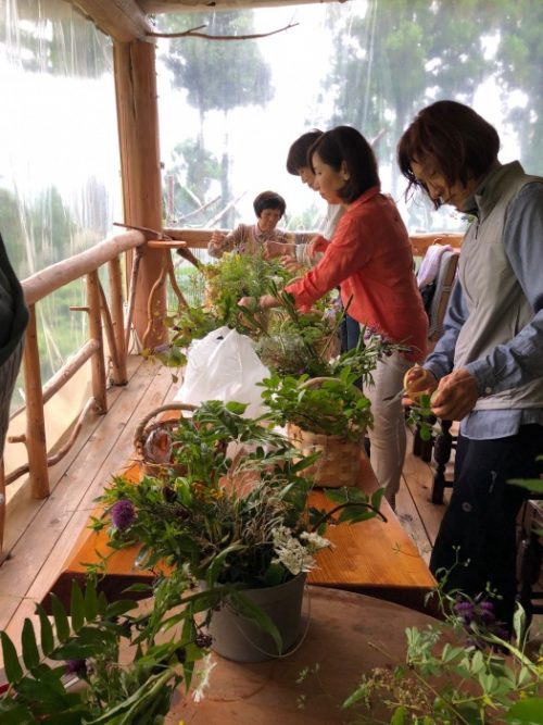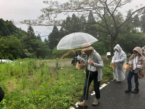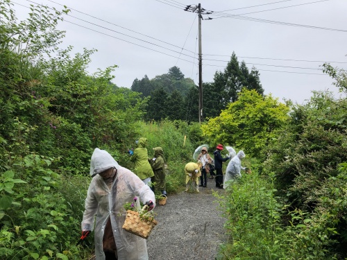 雨といっても小雨だったので、竹の棒を片手に、籠もって、ハサミ✂️もって、植物採集です。