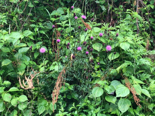 ウツギやアザミ、野ばらが花盛りです。