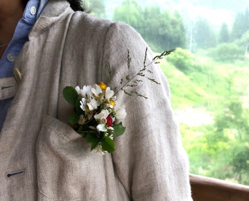 野ばらのミニブーケ💐これ、クマちゃん作品です。私のコートにピッタリ!なので付けさせてもらいましたぁー
