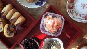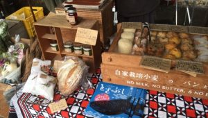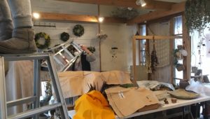 明日からのお正月のお飾り展に向け、JiLLオーナー山中が作品作りに没頭、愛犬アンちゃんの手を貸…