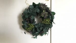 7月のレッスンのお知らせです。 今回は、「グリーンユーカリと実もののリース」です。 玄関ドアに…