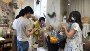 やっと、日曜まで来た! まずは、花材選び! ぱっと見たら4名みたいだけどーー、実は写真にもうひ…