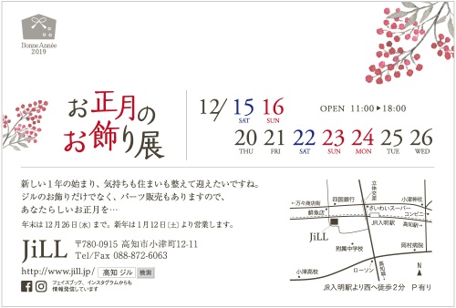 今年も南国市の土佐力舎さんでも、22日(土)よりJiLLのお飾りを購入する事ができます。