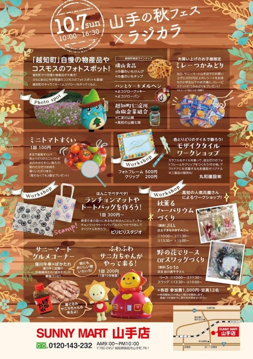 このサニーマート山手店では、「秋フェス」と題して 「おしゃれピクニック」というテーマで たくさんのブースがありますよー