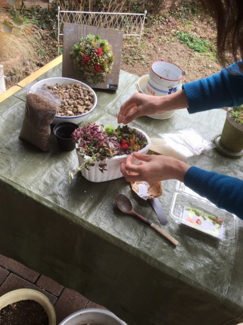 多肉で作ってもいいし、サボテン🌵でもいいし、春の草花でもいいですよねー、ハーブばかりで作っても素敵です。