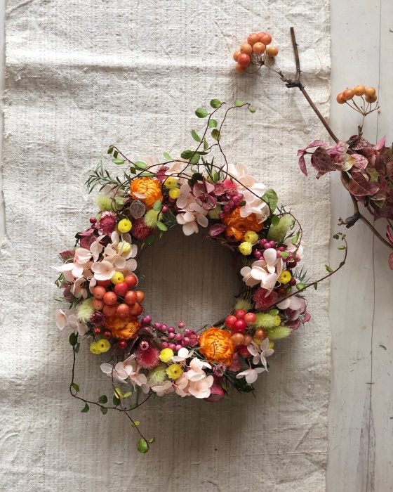 ピンク、オレンジ、黄色、グリーンを使った、「春カラーリース」です!!