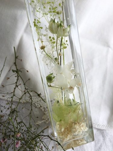 カスミ草、紫陽花等ナド、全8花材を使用しております。