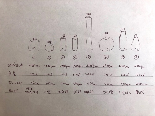 ボトルの容量やワークショップの料金は、以下のようになります。