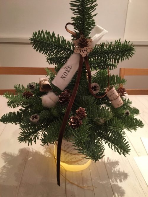 LEDライト付きワックスベースを使ってクリスマスツリーです。