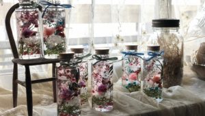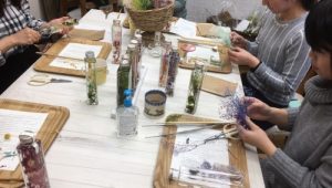 ハーバリウムワークショップ 今回は、8種のキットからセレクトできカラフルなカスミ草を追加できる…
