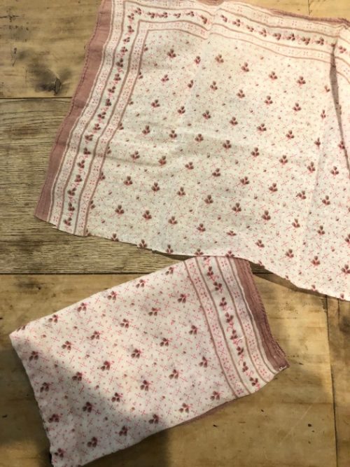 ① ハンカチを半分にカット(サイズ的に半分のみ使用)