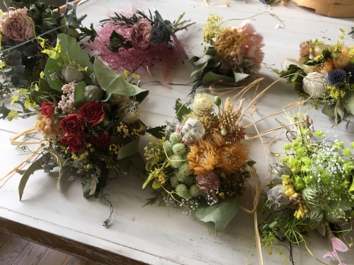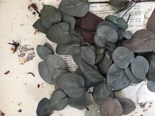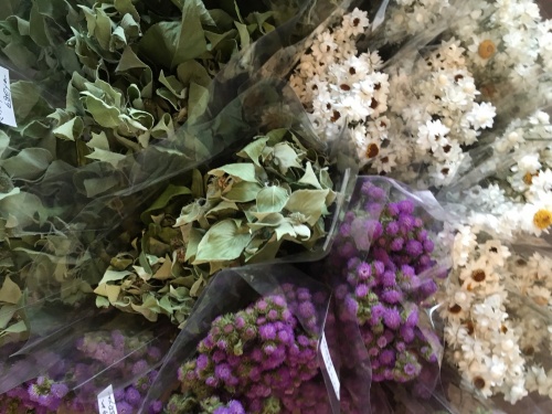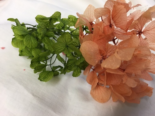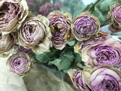 ・プリザーブドフラワー〜紫陽花、バラ、ユーカリポポラス、イモーテル(花芯にカビが発生する)、ブペッセンス、サグリナム等。