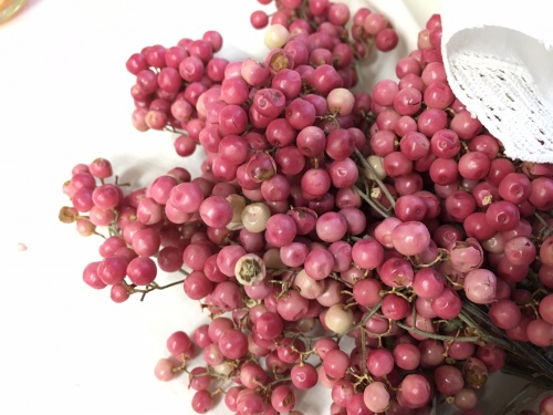 雑穀系や柔らかい実もの〜害虫のエサになり易い。ドライフルーツ、インディアンコーン、コーリャン、ペッパーベリー等、フン(粉状)が発生していたり、穴が開いていたりしている。
