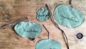 かわいい葉っぱに スタンプでメッセージを入れてみました。 スタンプに使う葉っぱは、白っぽいもの…