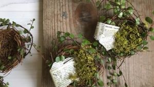 小さい、鳥の巣を使ってつくります。 1.用意するもの ・鳥の巣、英字新聞、ワイヤープランツ、モ…