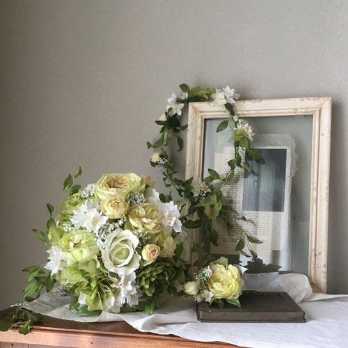 造花とは思えないナチュラルなものが増えました。変化しないのが魅力。