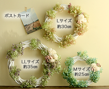飾る場所、シーンによってリースサイズをお選びいただけます。